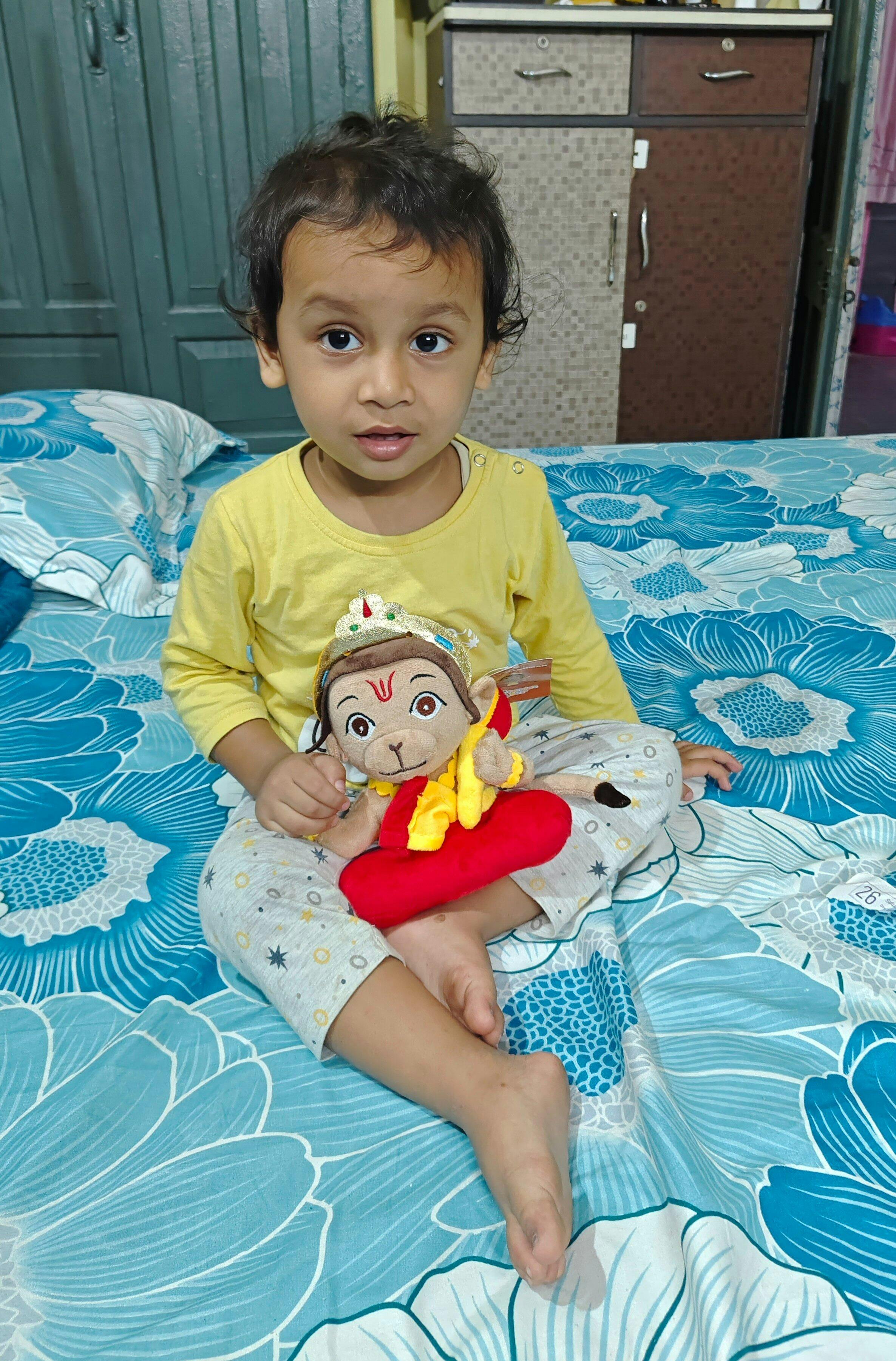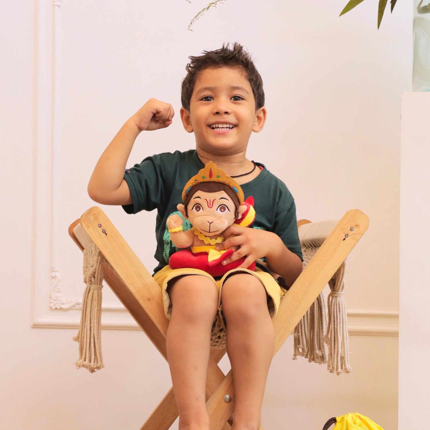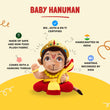 • Press the plushie’s belly to play Hanuman mantras—introducing little ones to music, rhythm, and spiritual learning.