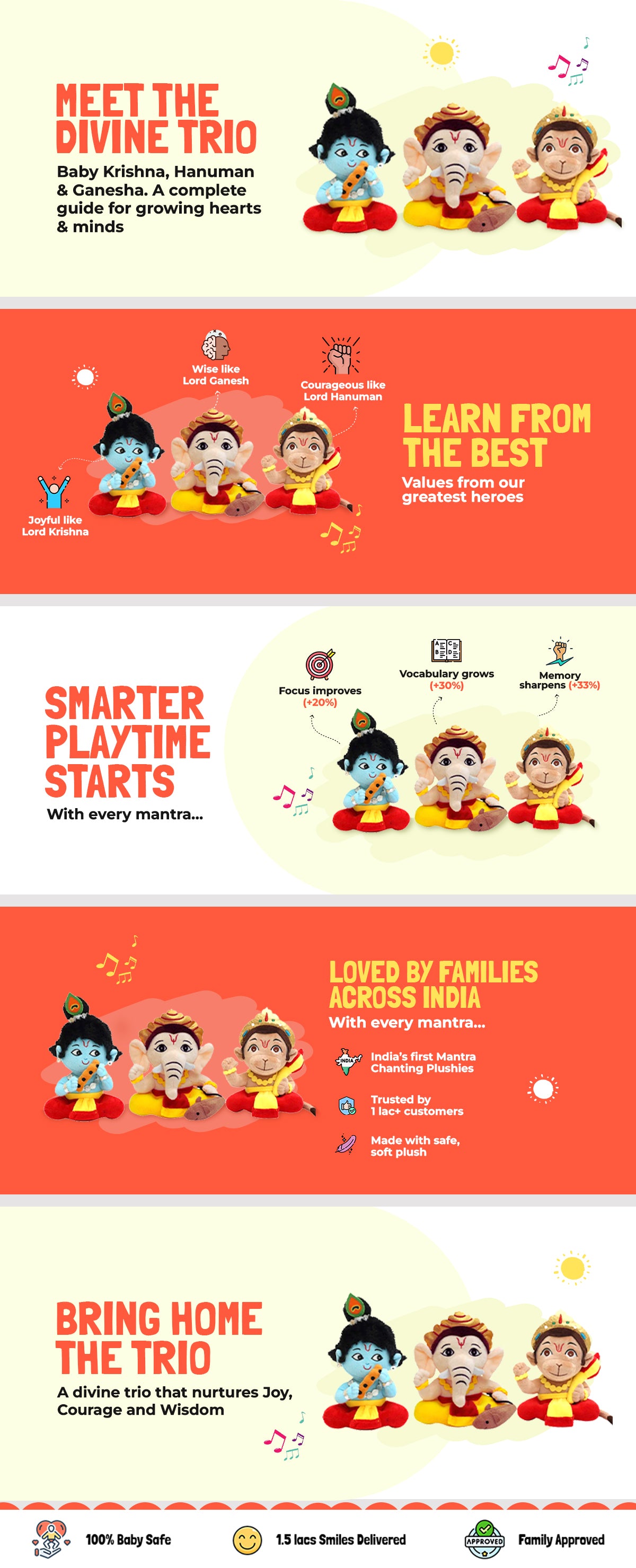 Mantra Chanting Baby Krishna , Baby Ganesha & Baby Hanuman ( Pack of 3 )- Small