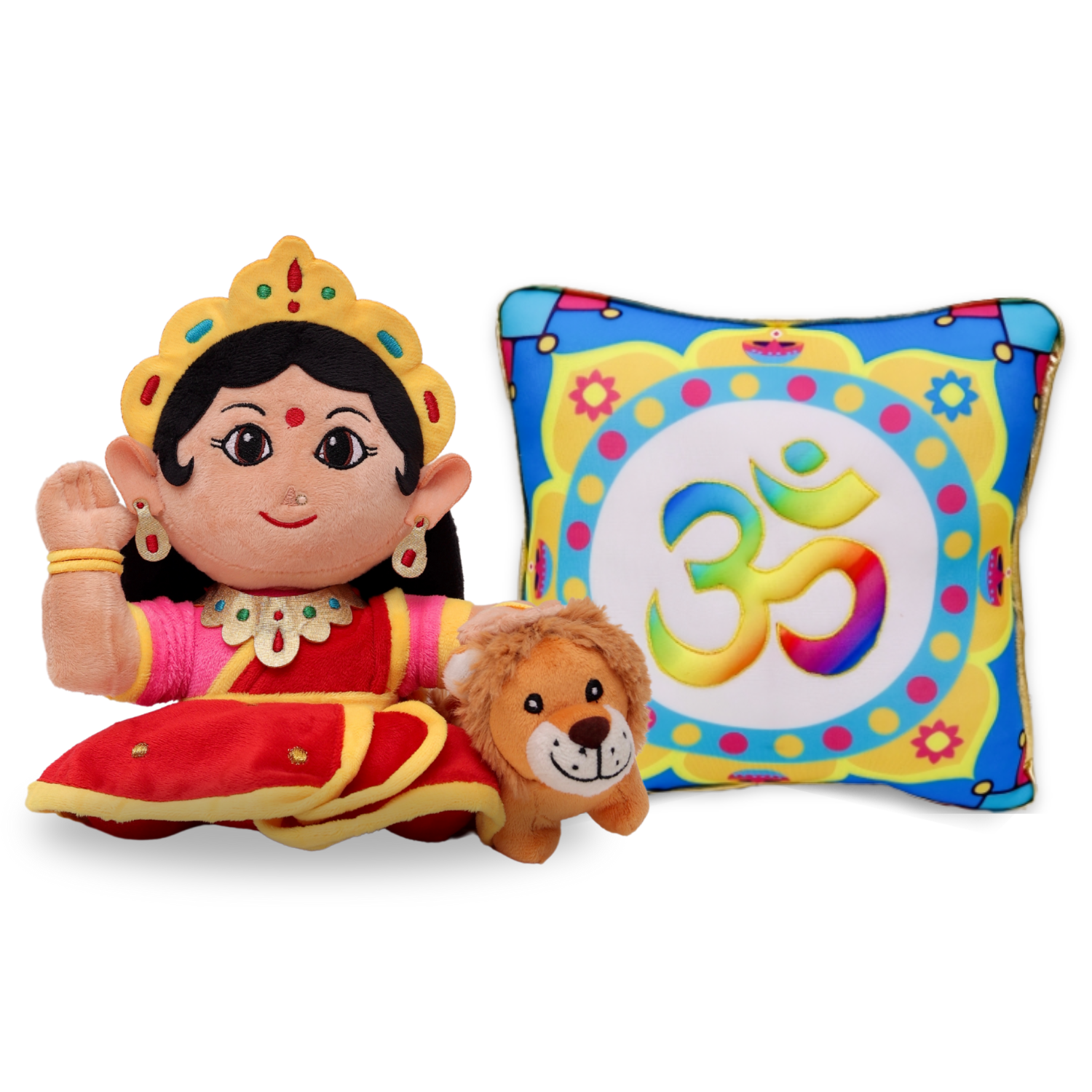 Small Devi Durga & Universal Mantra Chanting Plush Pillow Combo